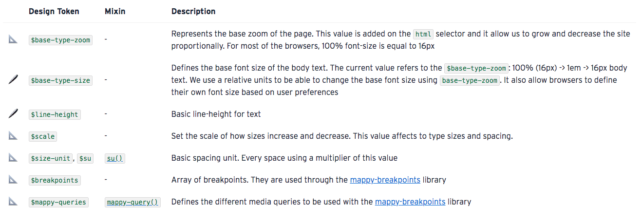 2. Some of the examples shown are CSS/SCSS variables and not cross-platform tokens but as Sarah Federman succinctly put it, “I would classify having CSS vars as design tokens anyway as long as there’s a design intent behind how they’re named and used.”