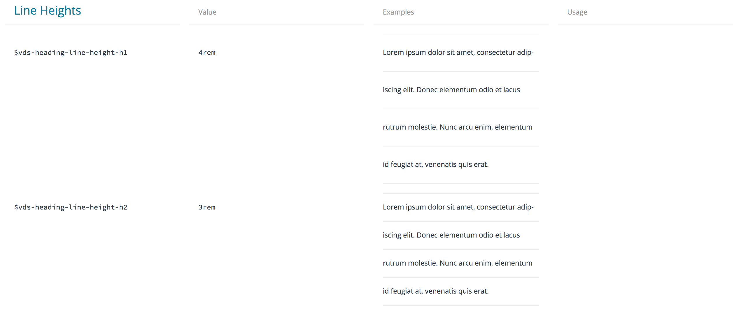 Udacity Veritas has a lot of typographic design tokens, even ones for line-height, max-width, and font-weight. I really like how they display line-height tokens with borders so it is easy to visualize: