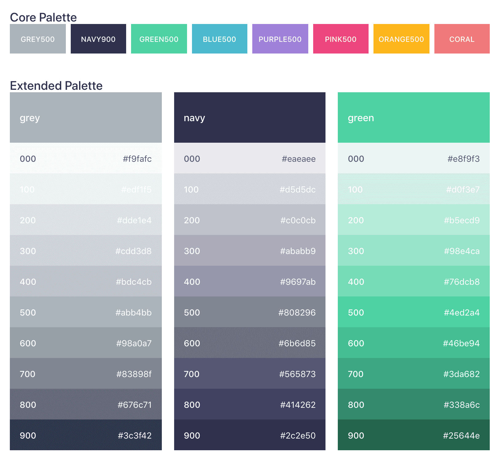 Color pages are generally the most visually pleasing of the bunch. Design systems generally tend to go all out and make really cool color pages. One of the most common displays for colors are color ramps that show all the shades of each type of color, like Kalo design system and Mineral UI which shows HSL values and accessibility ratings.
